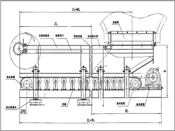 2、定量測重段:豎直方向處于浮動狀態(tài),通過四個ZZT系列液壓測重定量裝置達(dá)到精確稱重目的;通過對稱重信號處理后反饋BPBT-37/660型礦用隔爆型變頻調(diào)速,達(dá)到恒定給料的目的。